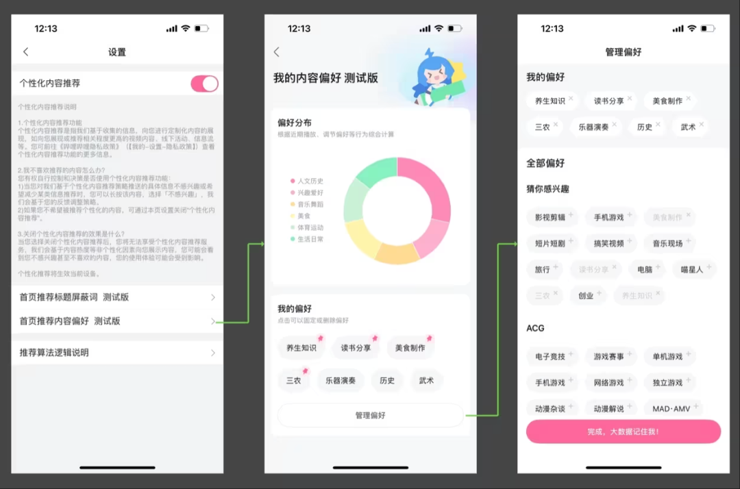 哔哩哔哩个性化内容推荐与偏好设置界面