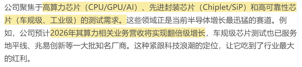 前瞻性的高端产能布局:形成规模与技术壁垒。公司很早就开始逆周期扩张,大力加码高端测试产能。以上海为总部,在无锡、南京、成都等地进行全国性布局,仅2025年前三季度资本开支就高达18亿元,整体产能利用率保持在90% 以上。这种重资产的投入,不仅带来了显著的规模效应,使其成为国内产能布局最广的第三方测试企业之一,更在超大尺寸封装、车规级复杂场景测试等高难度领域构建了技术护城河。