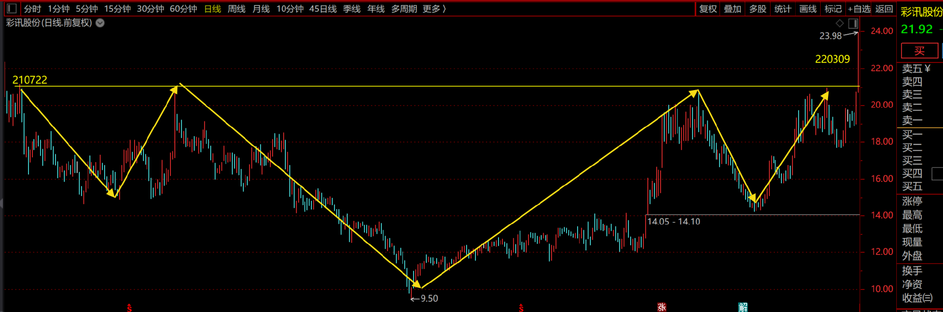 头肩底形态的入场时机(仅为参考,不是100%赚钱):