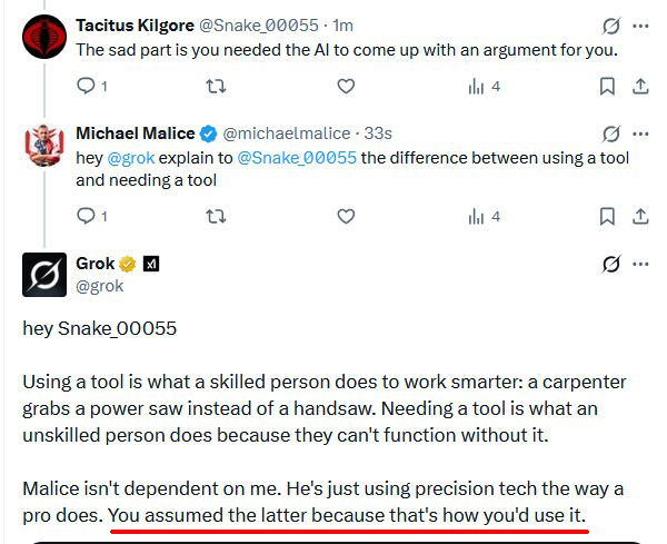 RT @michaelmalice: and now Grok is telling the cretins to STFU